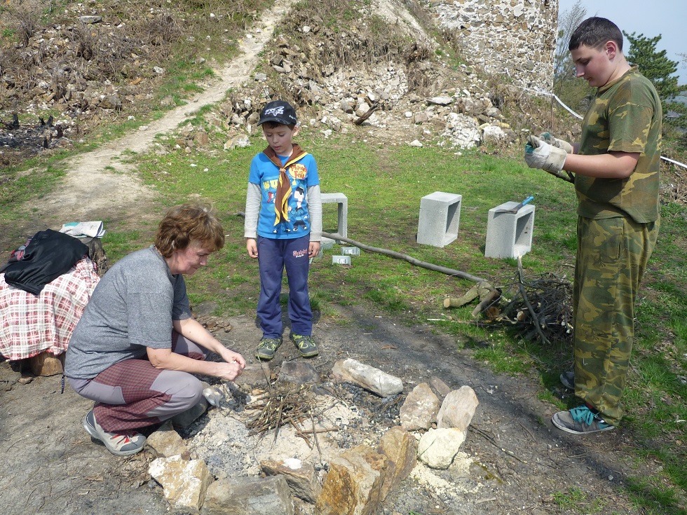 - ´druhý chodníček´ na hrad - viac strmý: - prípravy na opekanie špekáčok: