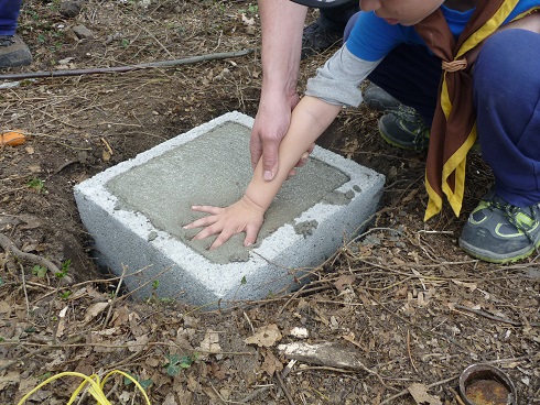 - prvý ´pilier´ zo 6 základov - Maťko bude mať v ňom odtlačok dlane: - odtlačok dlane vĺčaťa Maťka: